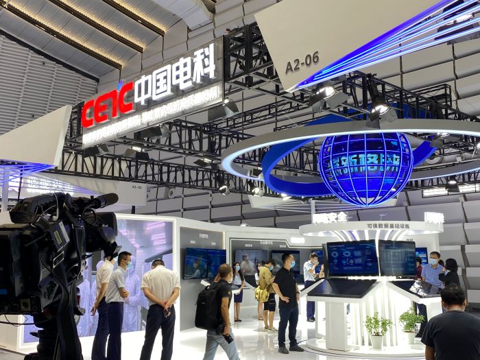 此次展会,中国电科划分企业形象主屏、网络安全、网信体系、电子装备、产业基础五大展示区进行展示。